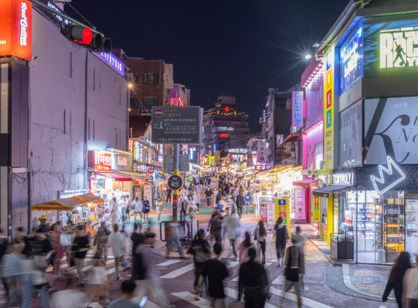 Hongdae is one of the most recognizable neighborhoods in Seoul for travelers who want a more modern side of the city. Official Seoul tourism materials describe the area as a lively college-town district filled with cafés, galleries, shopping, and events. That description matches what first-time visitors usually notice right away: the streets feel young, fast, creative, and busy.