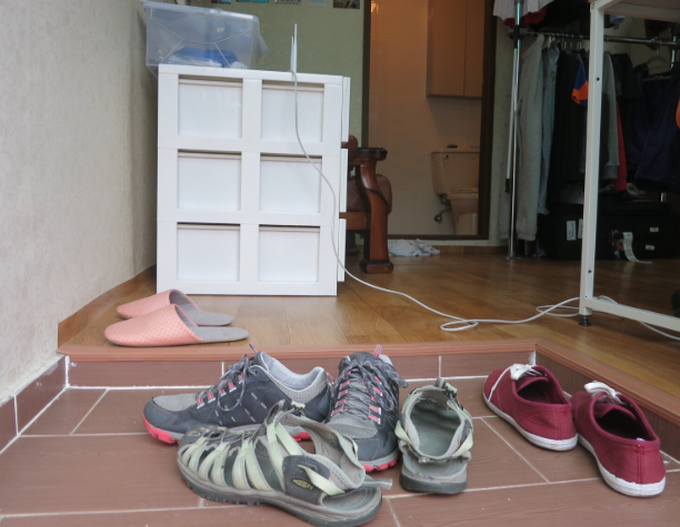 Outdoor shoes bring dirt from the street. Therefore, Koreans remove their shoes at the entrance.